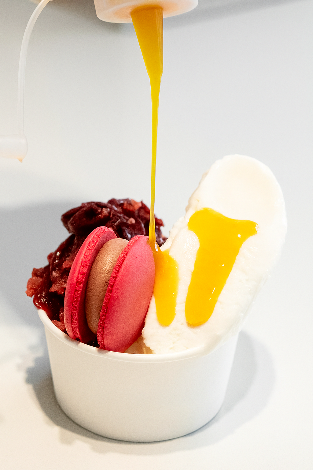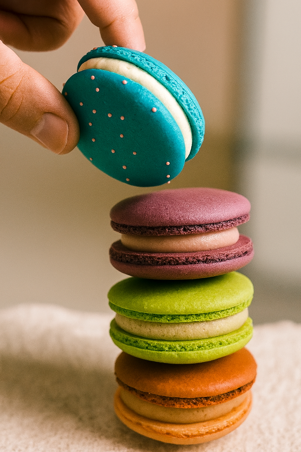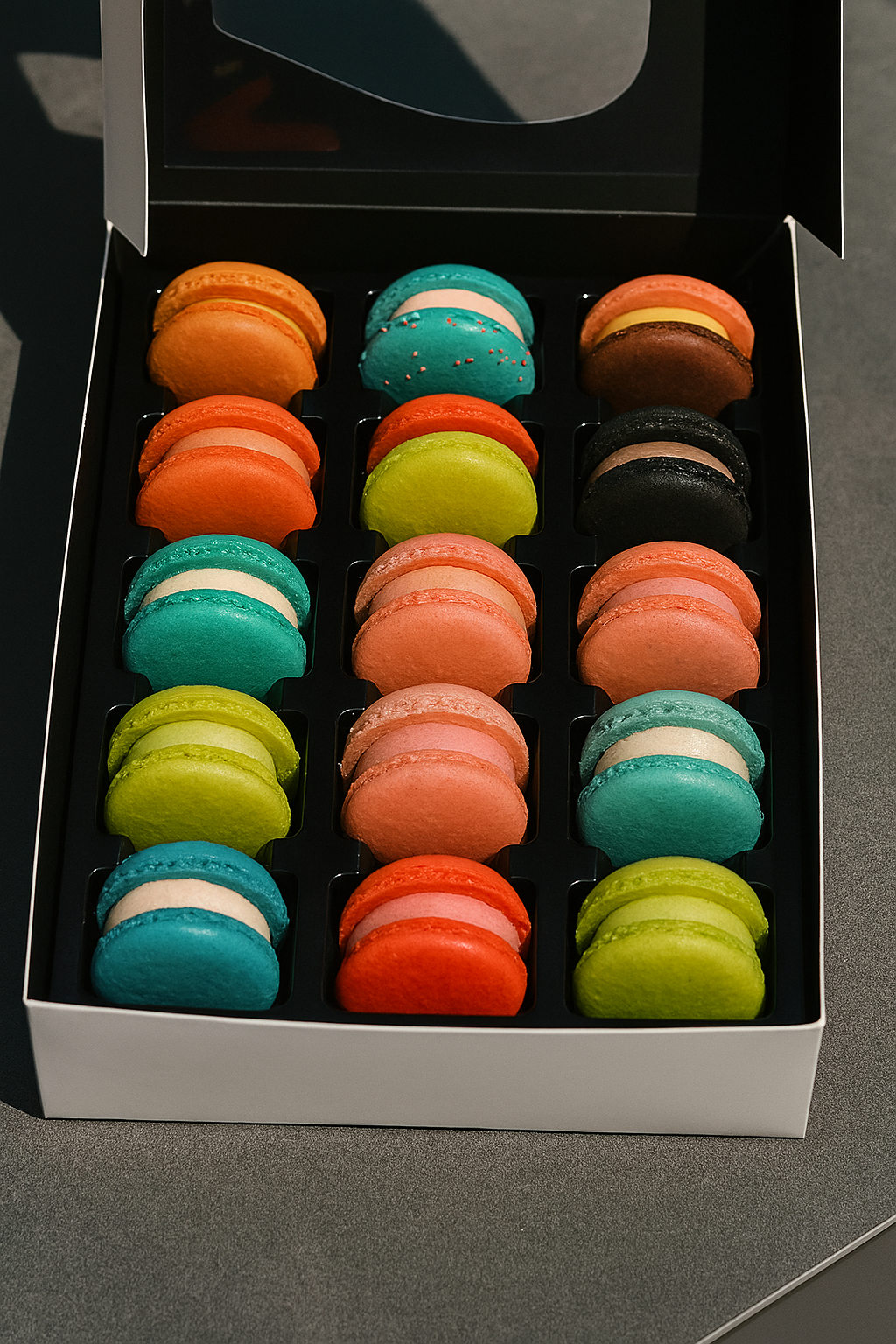 This is text about the macaron. It is made with the finest ingredients hand selected by oanny silverson and her team. The milk creates a unique texture that is paired with a rich chocolate for bite.